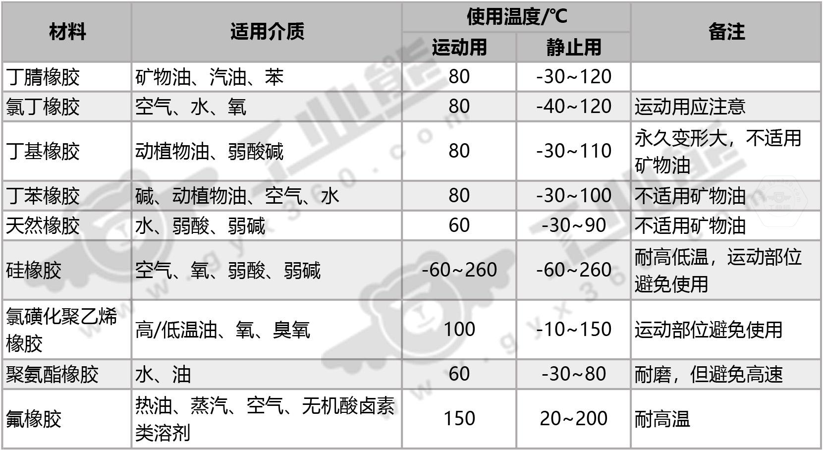 O形密封圈的常用材料及其使用范圍